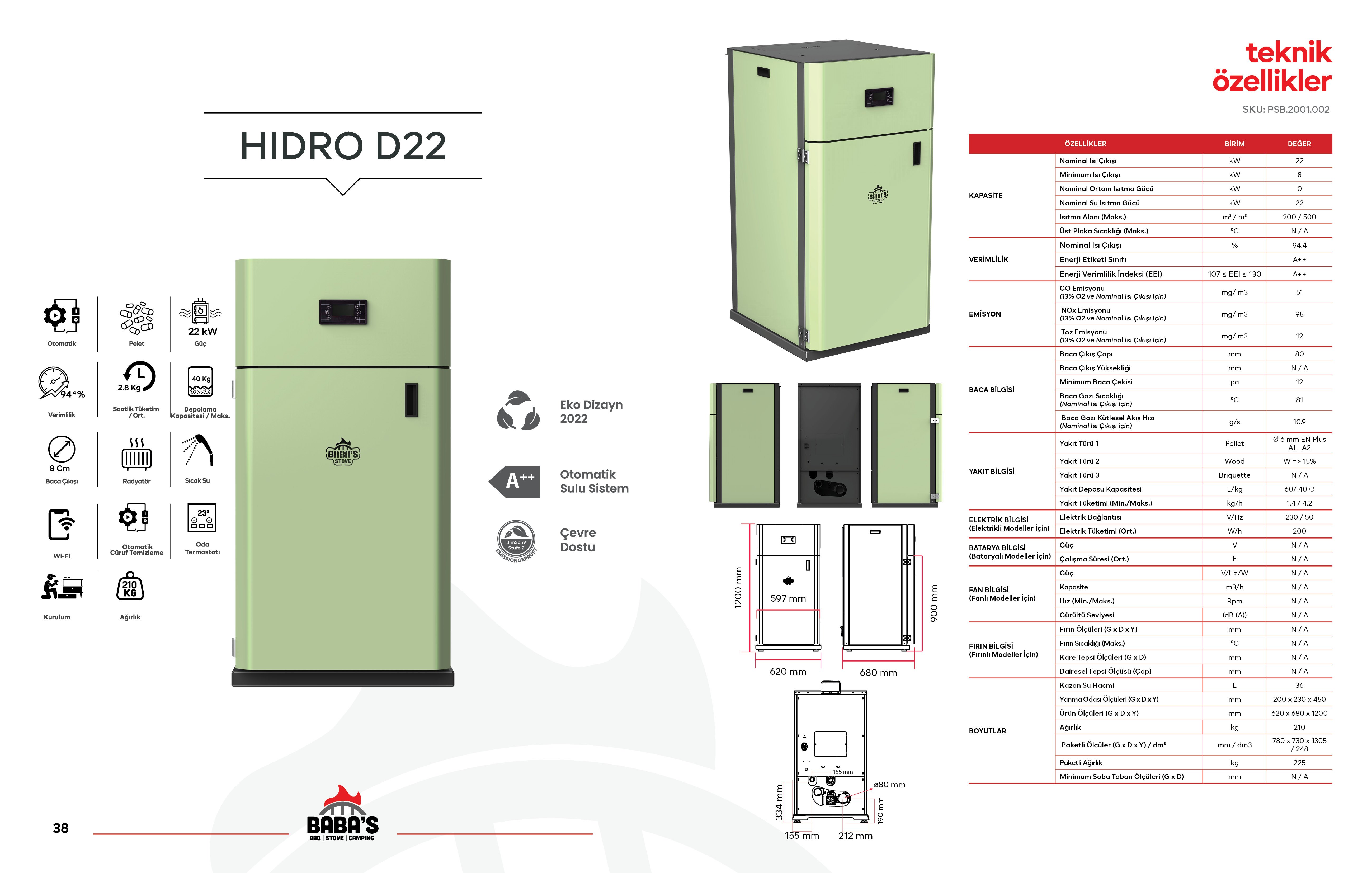 - Hidro D 22; pelet ile çalışan otomatik sulu sistem pelet kazanıdır. ·